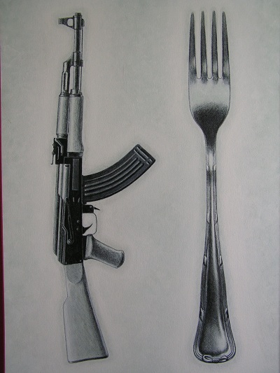 AK47 : ijzerrecyclage (8 X 29 X 85) Vork : Inox (1 X 10 X 76)